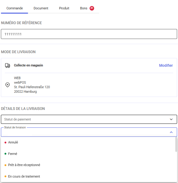 - [Modifier la quantité] – modifier la quantité de l’article dans le document
