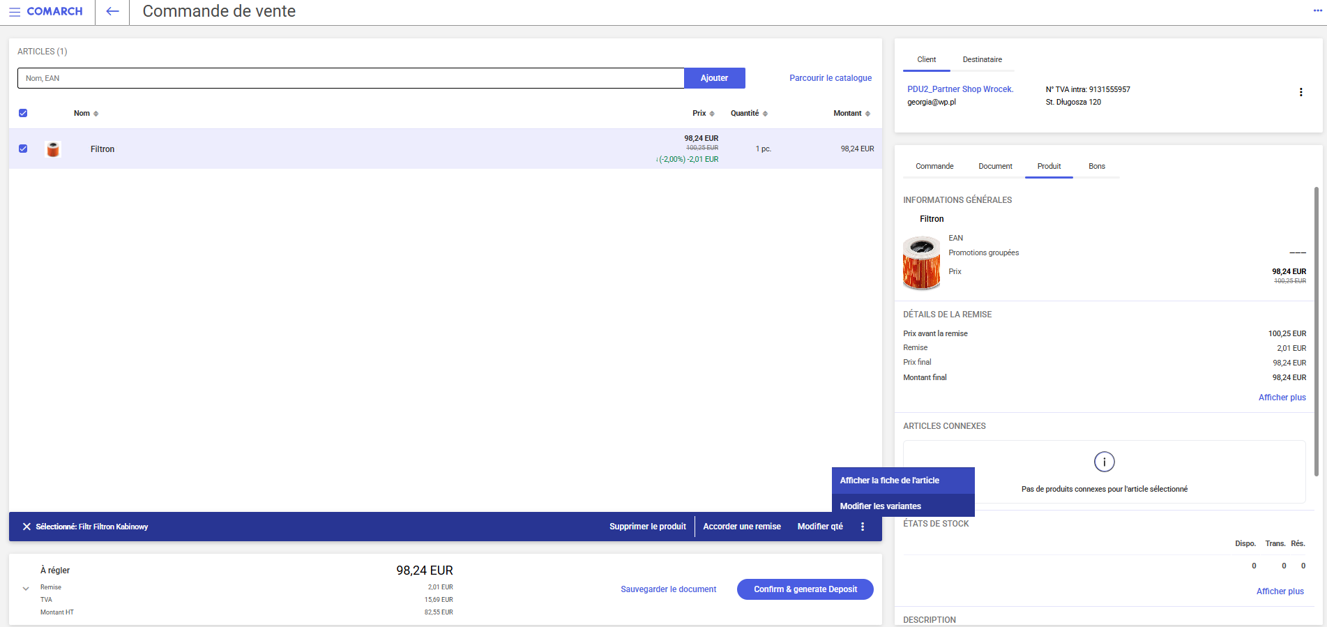 - [Modifier les variantes] – modifier la variante de l’article ajouté