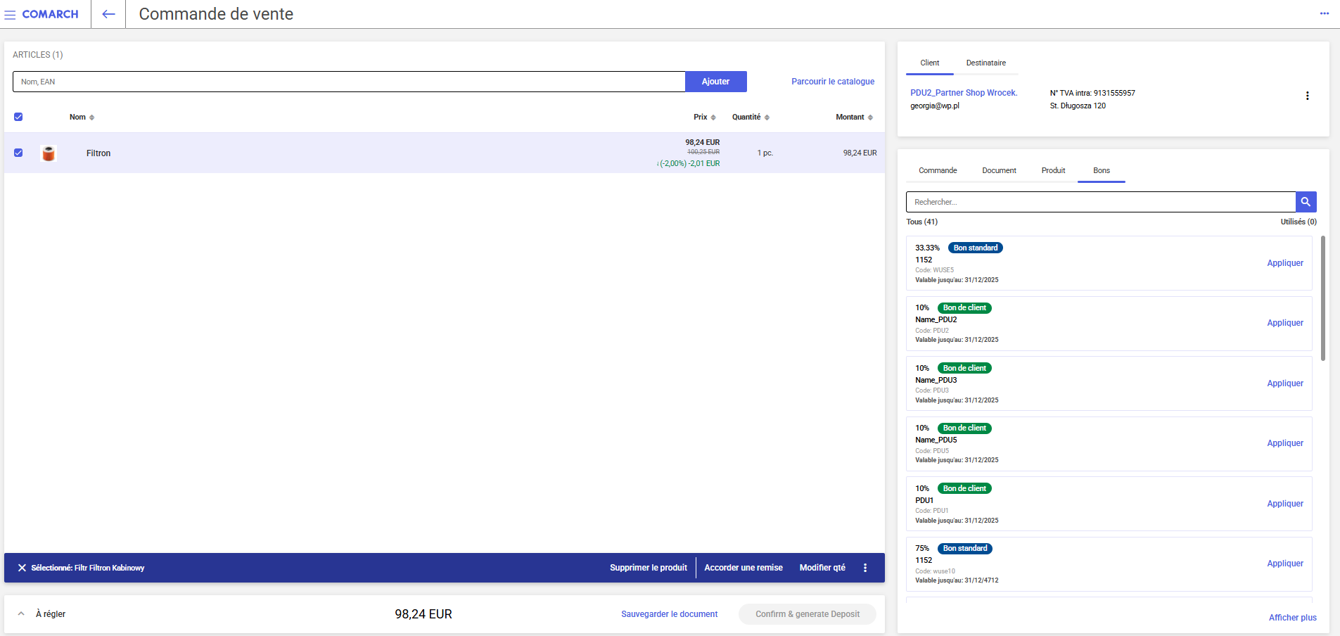 - Bouton [Appliquer] – permet d’ajouter un bon au document