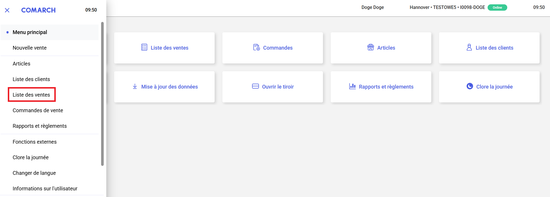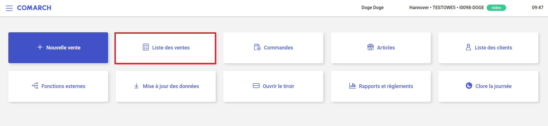 Afin d’aller à la liste des ventes, il faut sélectionner le bouton [Liste des ventes] dans la fenêtre principale de l’application ou dans le menu latéral.