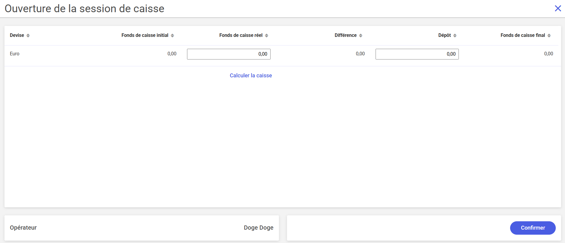 - Différence – dans ce champ est affichée la différence entre les valeurs des champs Fonds de caisse initial et Fonds de caisse réel